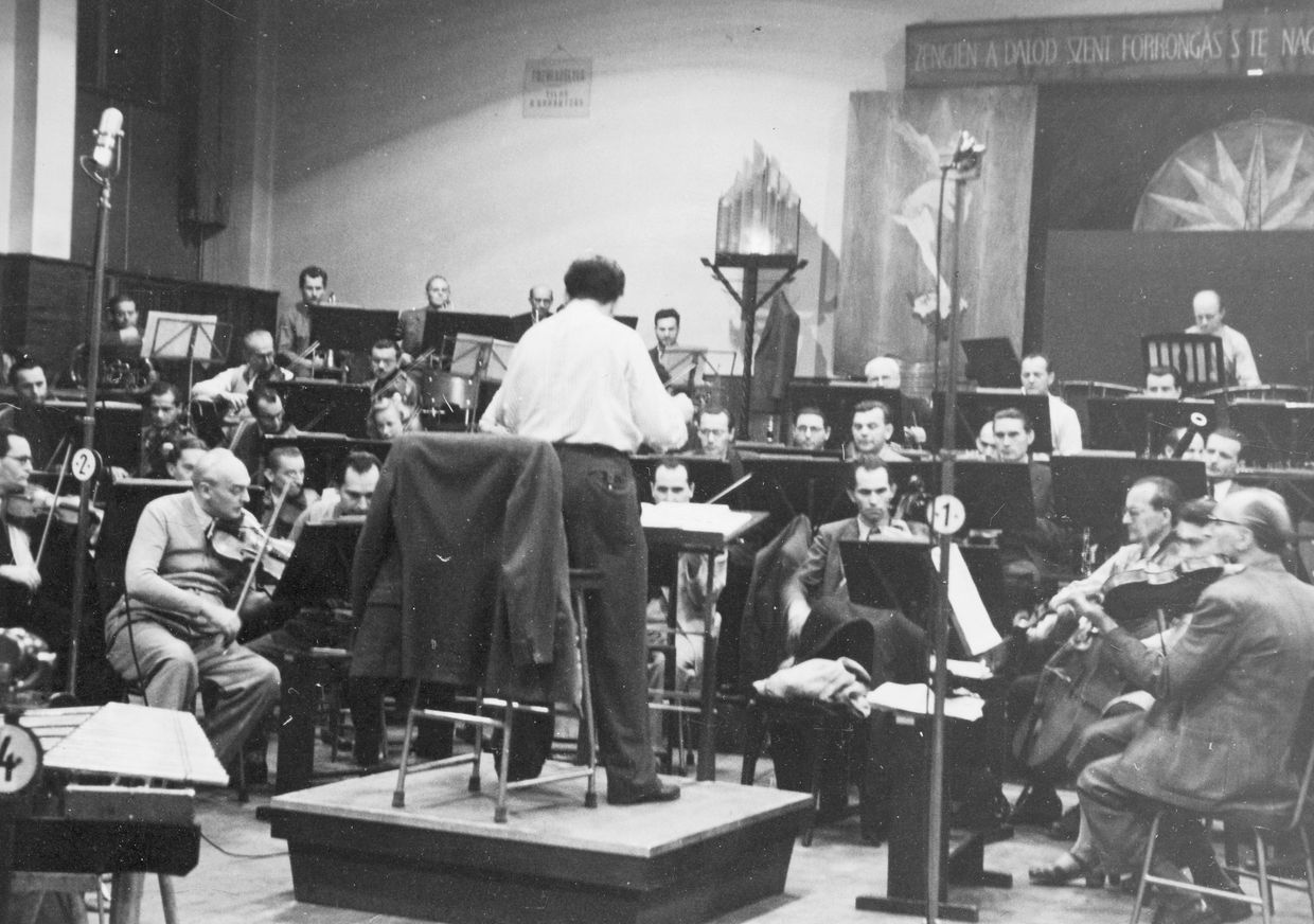 Оркестр в студии. Репетирует Дьёрдь Лехел.