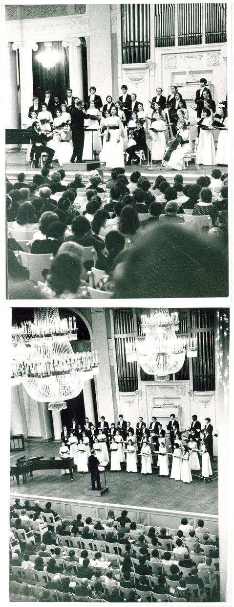 В Большом зале Ленинградской филармонии Томас Хилбиш и его хор представили две программы, максимально раскрывавшие исполнительские возможности молодежного коллектива. Это были не только Таллис, Бах, Шуман, Брамс, но и Равель, Пуленк, Шенберг, конечно же американская музыка – Копланд, Бернстайн, Гершвин, Ирвинг Файн, Уильям Шуман. Специально для советских гастролей хор подготовил сочинения Рахманинова и Чайковского.