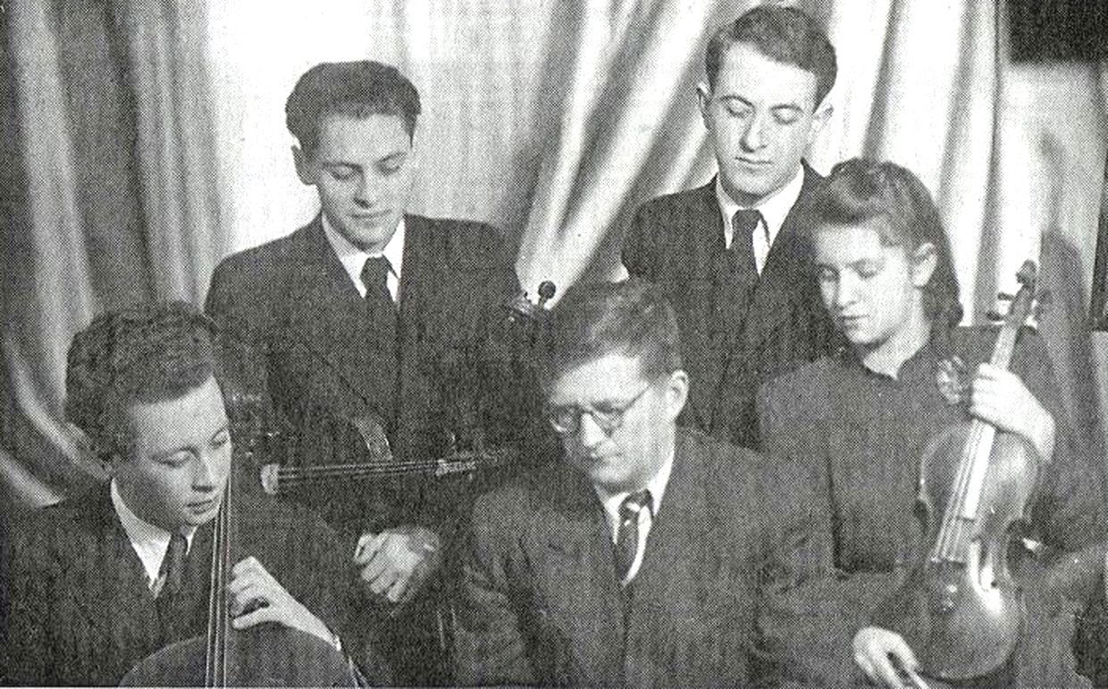 Шостакович и Квартет имени Бородина (слева направо): Валентин Берлинский, Ростислав Дубинский, Рудольф Баршай, Нина Баршай.
