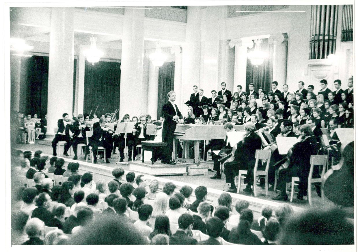 В Большом зале Ленинградской филармонии музыканты дают два концерта в 1968 году, исполняя «Страсти по Иоанну» и Мессу си минор Баха. Мессу повторят на гастролях 1970 года, тогда же представят ораторию Гайдна «Времена года».