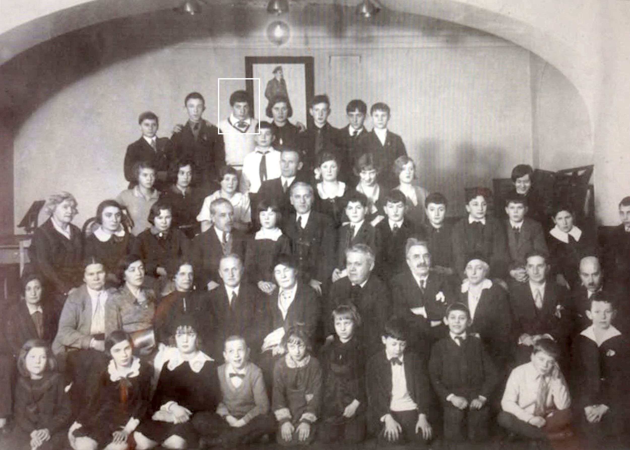 Особая детская группа Ленинградской консерватории, педагоги и руководители консерватории, 1935 год. Яков Бабель отмечен в верхнем ряду третий слева.