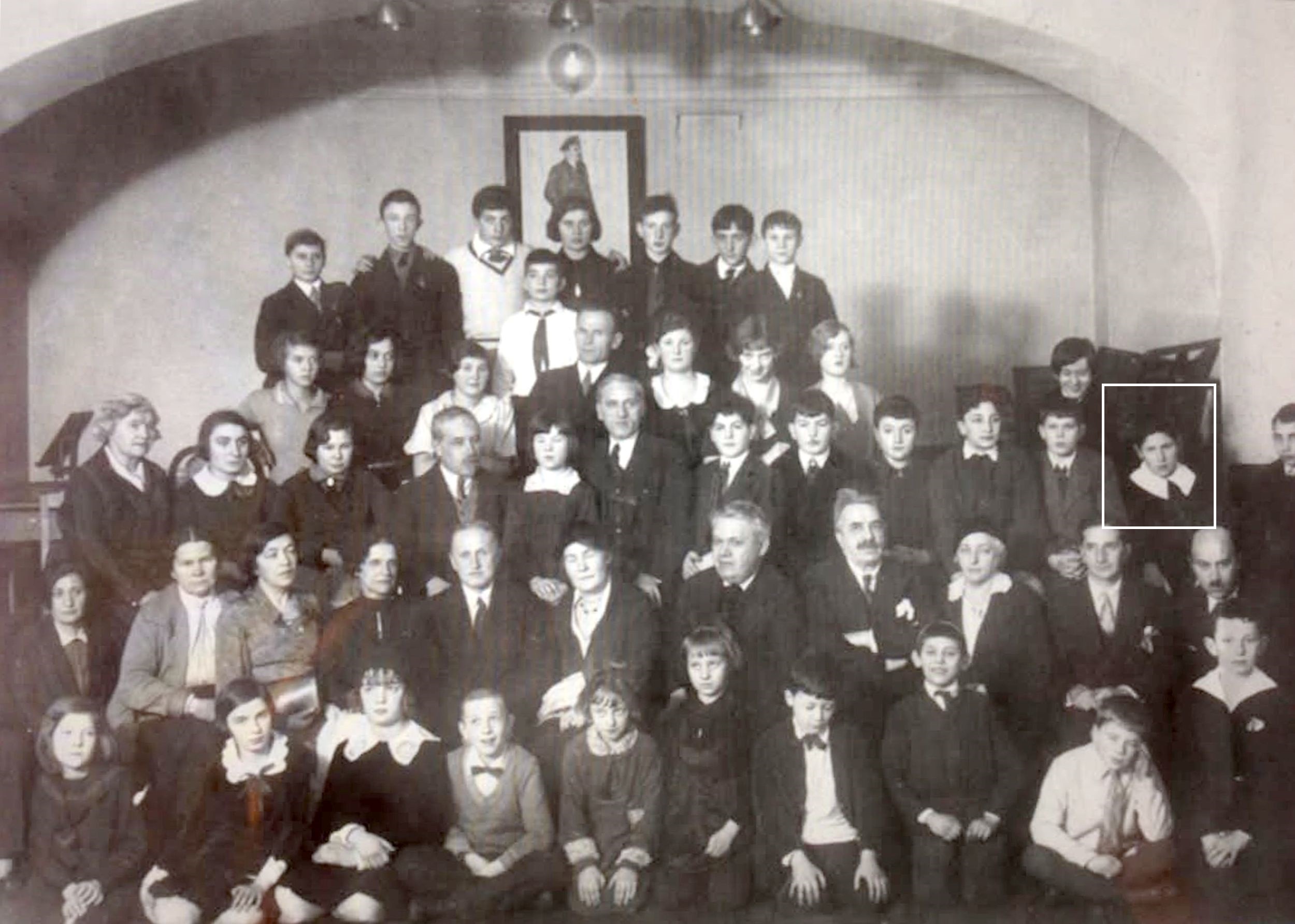 Особая детская группа Ленинградской консерватории, педагоги и руководители консерватории, 1935 год. Виссарион Слоним отмечен в третьем ряду второй справа.