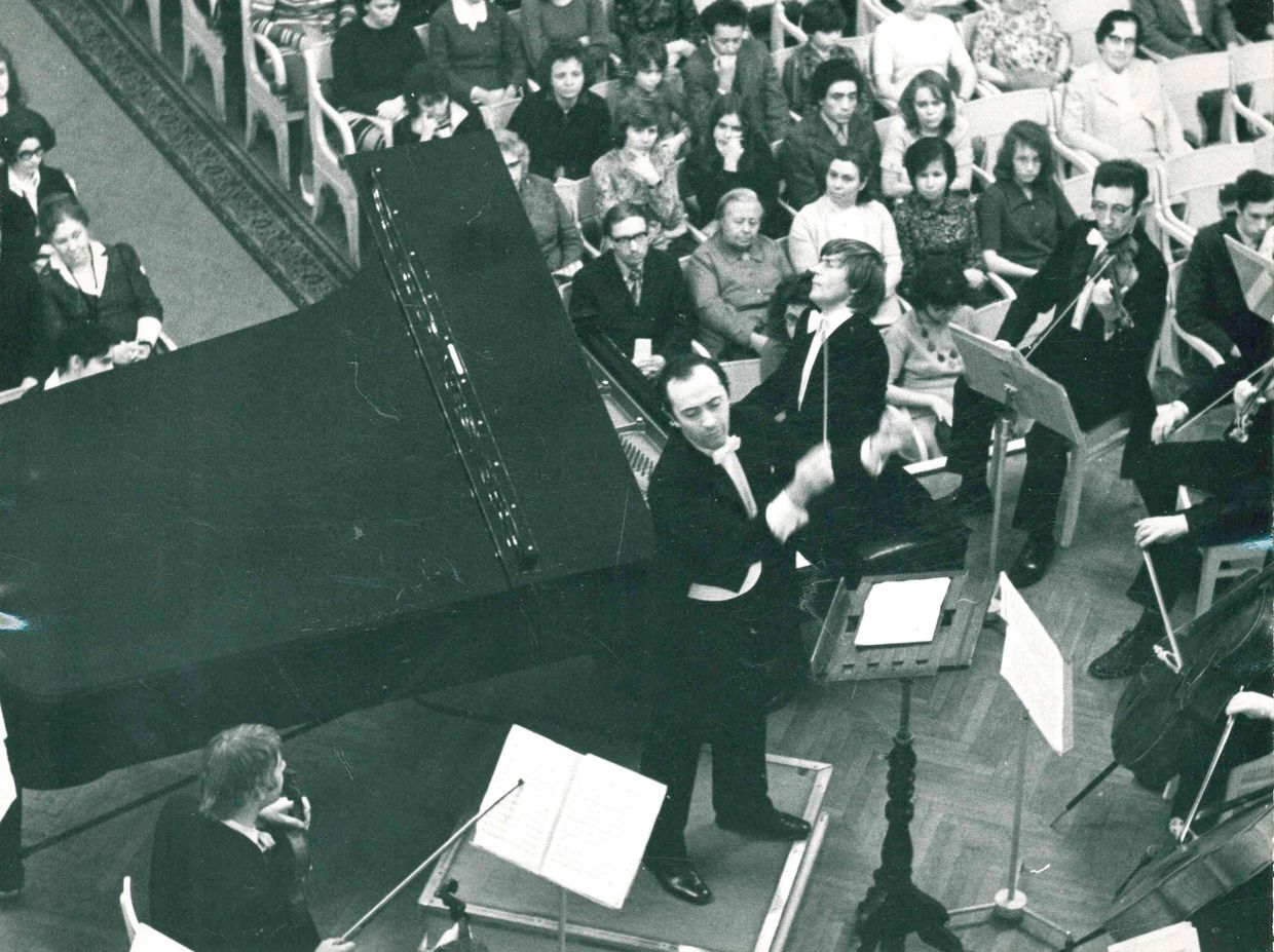 Павел Бубельников дирижирует премьерой сцен из детской оперы композитора Сергея Баневича «Фердинанд Великолепный». Большой зал, Оркестр ЗКР, дневной концерт 3 марта 1974 года.