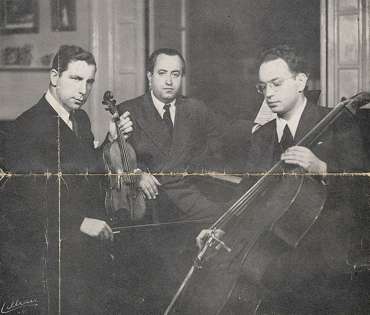 История создания трио связана с именем великого скрипача Иегуди Менухина, хотя сам он в ансамбле никогда не играл. В конце 1930-х годов Менухин встречает в Нью-Йорке пианиста Адольфа Баллера (1909–1994). Уроженец городка Брод (ныне Украина, а в те времена – Австро-Венгрия), Баллер уже в 13 лет давал сольные концерты в Венской филармонии, до начала войны гастролировал по Европе как солист и ансамблист. После аншлюса карьера музыканта с еврейскими корнями в Вене продолжаться не могла. Прежде чем эмигрировать, пианист успеет оказаться в тюрьме, где ему сильно повредят руку, но сумеет выбраться и в 1939-м приедет в Нью-Йорк. Услышав игру Баллера, Менухин не только предложит ему совместные концерты и гастрольные туры, но и на время поселит музыканта на своей вилле «Альма» в Калифорнии. Здесь же будут проходить первые репетиции нового Альма-трио. В первоначальный состав ансамбля войдут еще два эмигранта: венгерский виолончелист, ученик Адольфа Шиффера и Пабло Казальса Габор Рейте (1916–1987) и скрипач польского происхождения Роман Тотенберг. Оба они также бежали из Европы, охваченной нацизмом, оба пытались начать в Америке жизнь с нуля. Менухин посоветовал музыкантам именно ансамблевую карьеру и сам способствовал первым контрактам.