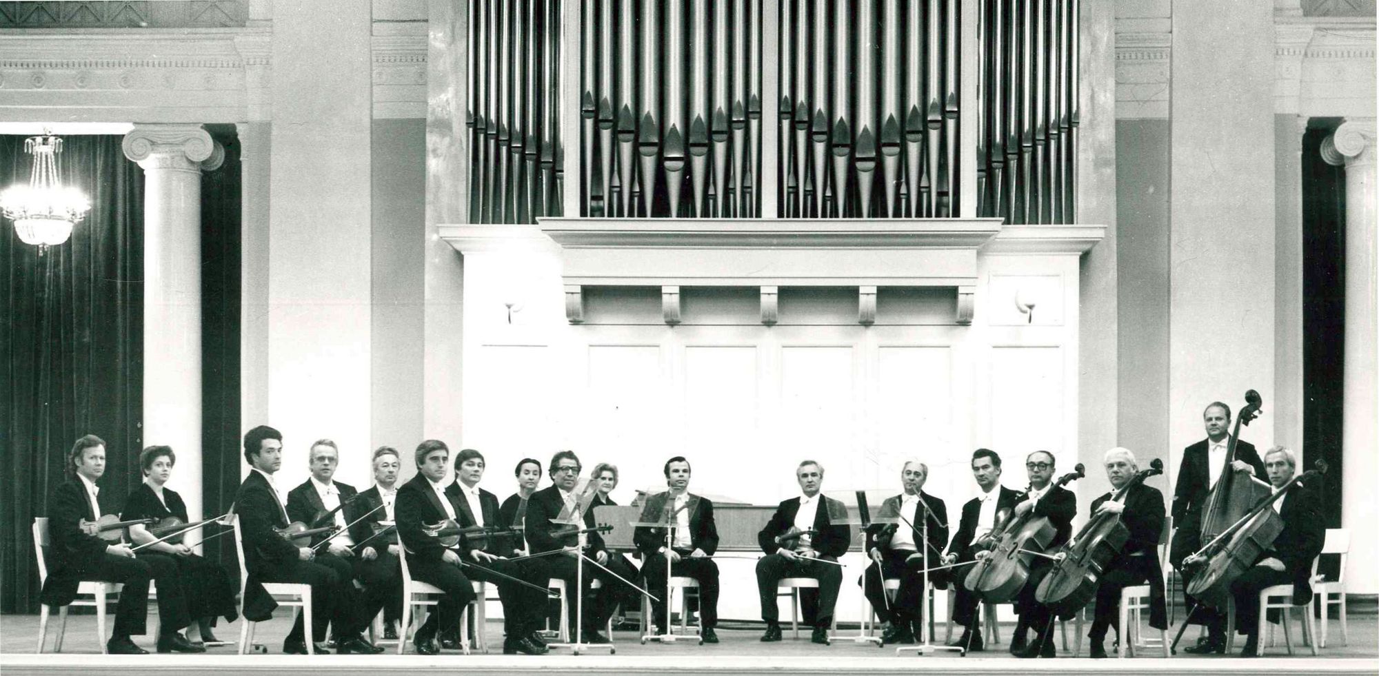 В сентябре 1955 года на гастроли в Москву и Ленинград из Мюнхена приезжает Камерный оркестр Вильгельма Штросса. В Большом зале Ленинградской филармонии немецкие музыканты дают четыре концерта, в которых исполняют Баха и его сыновей, Телемана, Корелли, Перголези. В оркестре 20 струнных и клавесин, играют без дирижера, его функцию выполняет первая скрипка – сам Вильгельм Штросс. Этот, первый такого формата, оркестр производит настоящий переворот в умах музыкантов двух столиц. Становится ясно, что играть старинную музыку полным составом симфонического оркестра, как это всё еще было принято на советских сценах, уже невозможно.