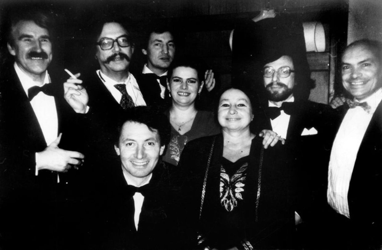 «Мадригал» с Андреем Волконским (вверху, второй слева) в Риме, 1983 год. Лидия Давыдова третья справа.