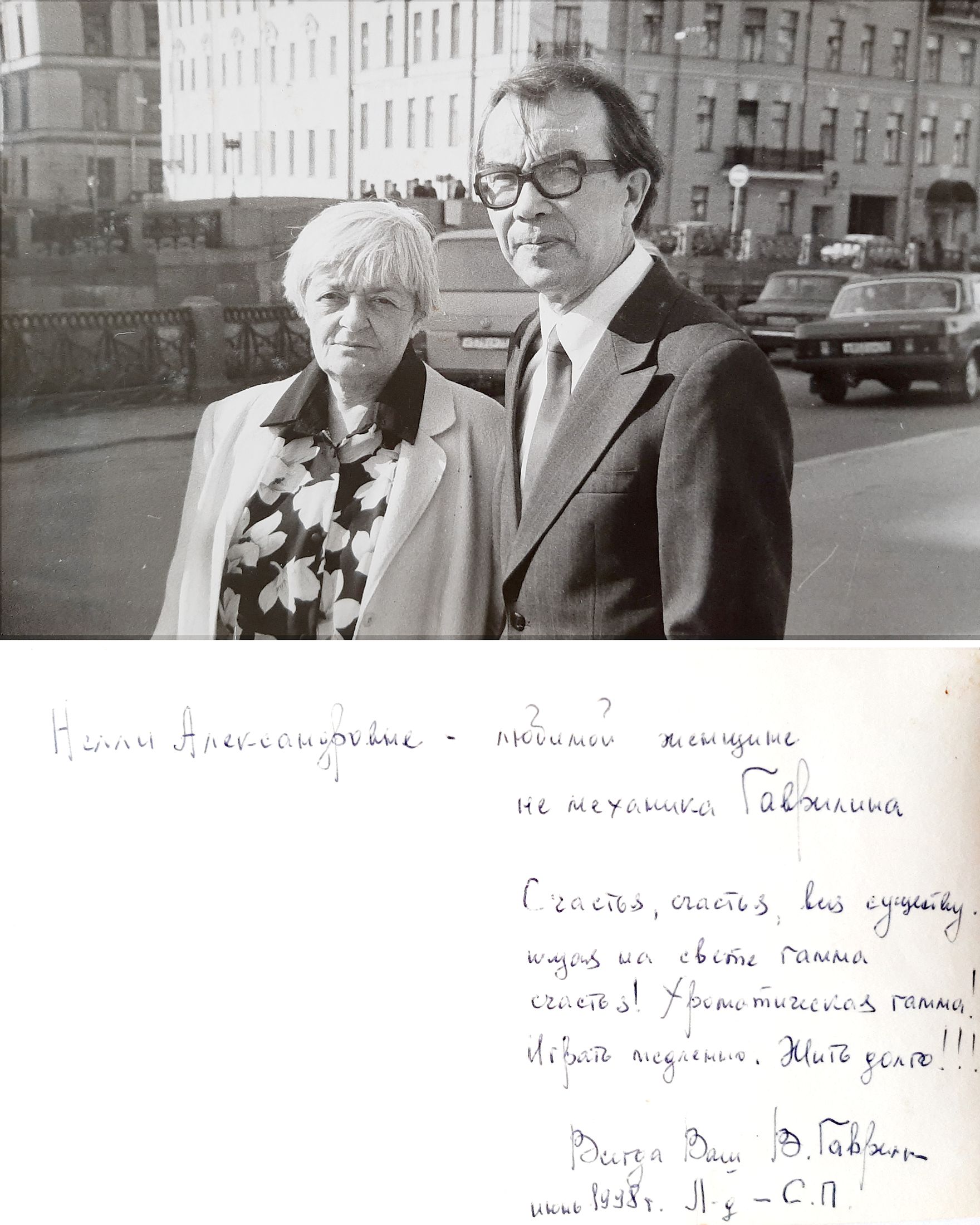 С композитором Валерием Гаврилиным. Санкт-Петербург, июнь 1998 года (последние совместные фото). На обороте автограф-посвящение Валерия Гаврилина Нелли Тульчинской.